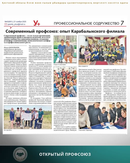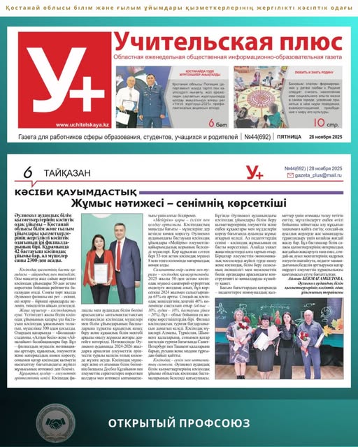 В свежем номере областной общественной информационно-образовательной газеты «Учительская плюс» размещен публичный отчет за 2025 год филиала «Аулиекольская районная организация профессионального союза работников образования» Локального профсоюза образования. Это […]